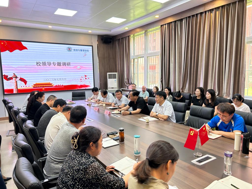 7月6日,党委书记王周锁到旅游与管理学院开展专题调研,党委副书记、纪委书记王勇胜,学院院长王红相、副书记周广阔及全体教职工参加调研会议。会议由周广阔主持。