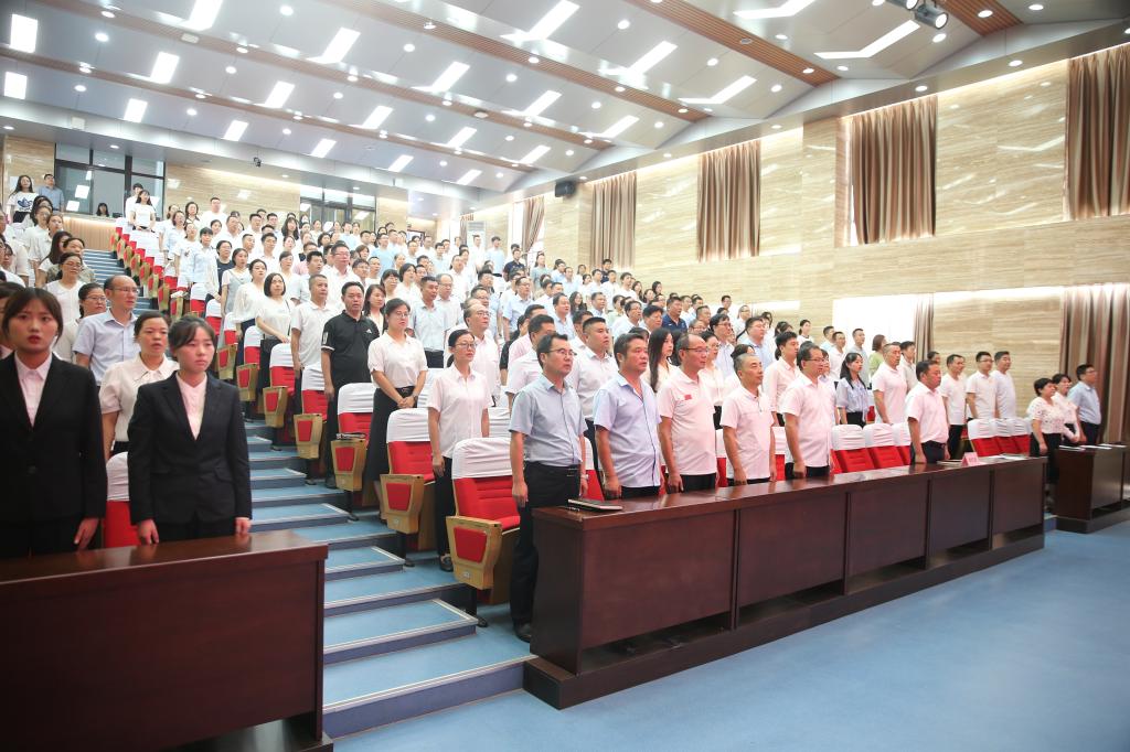 9月8日下午,学校庆祝第39个教师节暨表彰大会在南校区思辨堂举行。学校党委书记王周锁,党委副书记、纪委书记王勇胜,副校长蒋平江、胡俊鹏,受表彰教师代表,各二级学院教师代表,各二级学院(部)党总支书记、院长(主任),机关处室负责人参加了大会。大会由王勇胜主持。
