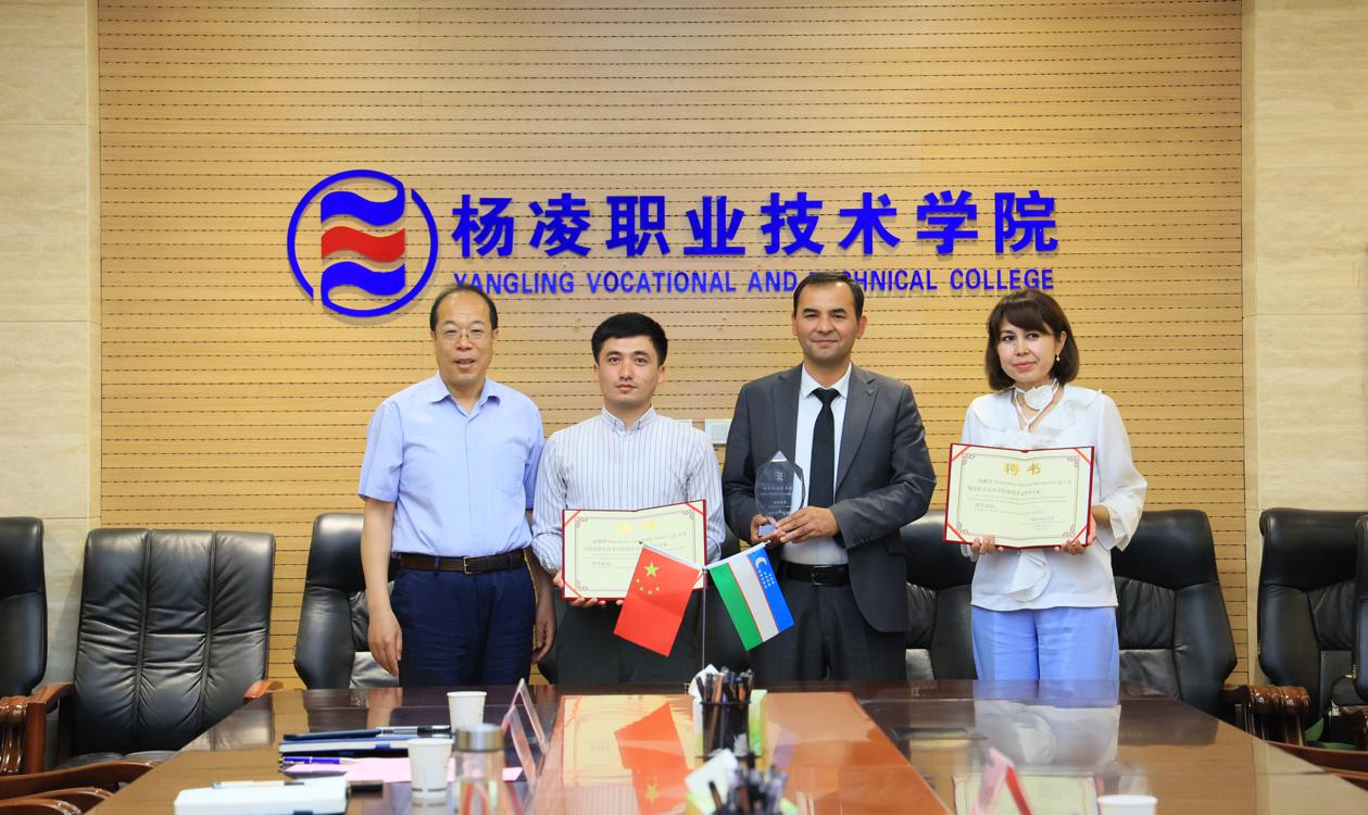 在我校交流访问期间,图尔迪巴耶夫一行参观了校史馆,以及水利工程学院、建筑工程学院、交通与测绘工程学院、生物工程学院、生态环境工程学院、动物工程学院、经济与贸易学院、旅游与管理学院教学设施和实训条件,并与相关二级学院负责人和专业教师进行了专业标准和技能标准的研讨交流。图尔迪巴耶夫向我校授予“乌兹别克斯坦古利斯坦国立大学——中国杨凌职业技术学院专业技能培训基地”牌子,并与我校签订“骨干教师专业技术培训项目”合作协议。仲伟周向古利斯坦国立大学两名教师颁发我校校外专家聘书。