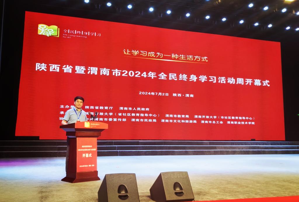 7月2日,以“让学习成为一种生活方式”为主题的陕西省暨渭南市2024年全民终身学习活动周开幕式在渭南市举行。我校《“农民吹哨 专家报到”终身教育促振兴》国省两级终身学习品牌项目参与展播交流。