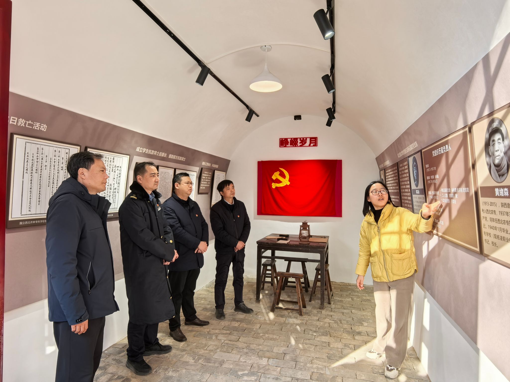 党员们怀着崇敬的心情走入12孔窑洞,通过参观历史照片、文献资料及革命文物,重温我校附设高职时期师生积极投身革命斗争的光辉历史,深入了解往昔那段波澜壮阔的革命岁月,追寻红色足迹,重温革命历史。