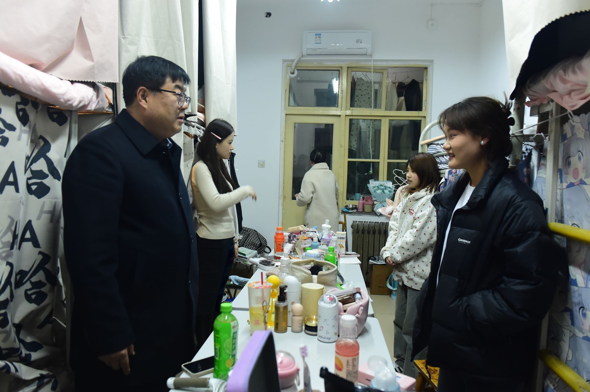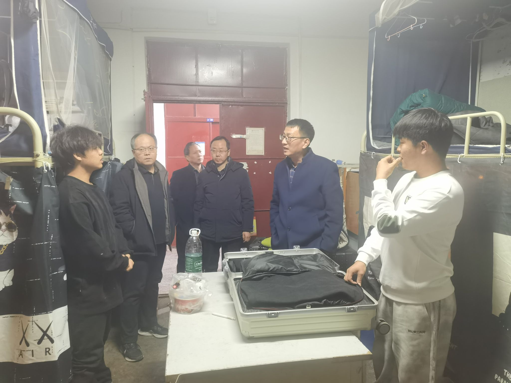 晚上,校领导分别带队深入三校区学生公寓看望返校学生,与学生们亲切交谈,询问他们的假期生活和返校后的适应情况,了解他们的生活情况和需求,并叮嘱他们注意安全,合理安排学习和生活,以饱满的精神状态迎接新学期。