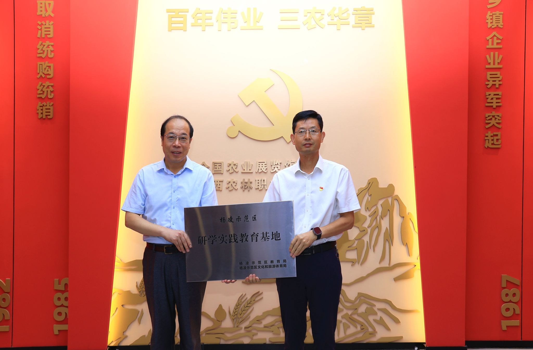 6月30日上午,百年伟业·红色三农研学馆开馆仪式在我校举行。杨凌示范区党工委书记史高领,省委农办副主任、省农业农村厅副厅长陈文,杨凌示范区党工委委员、管委会副主任张小明,西北农林科技大学党委副书记庄世宏,学校党委书记韩明军、校长仲伟周,全国农业展览馆(中国农业博物馆)当代农业研究部主任杨卫东等出席开馆仪式。开馆仪式由学校党委副书记刘瑞明主持。