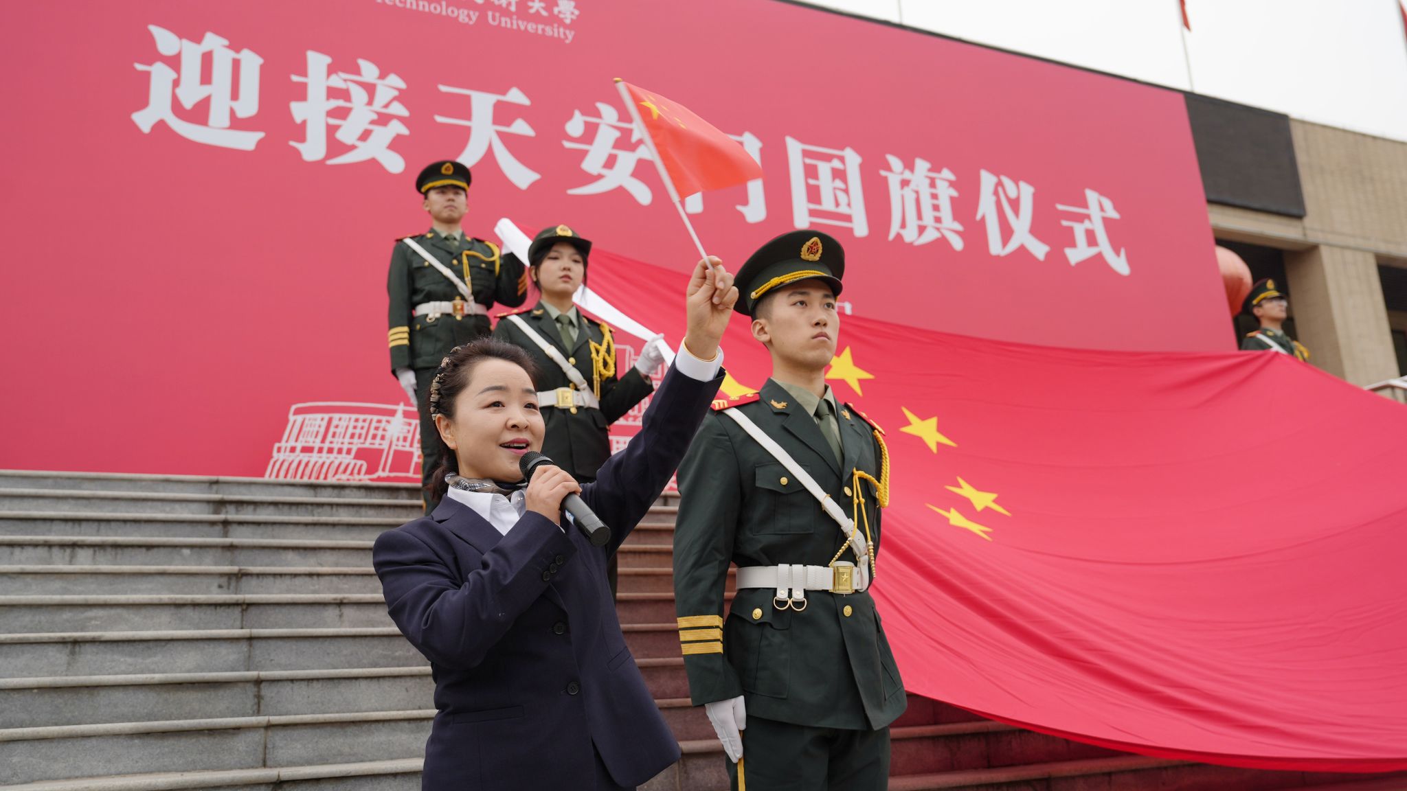 迎接天安门国旗仪式在南校区醒钟楼广场举行
