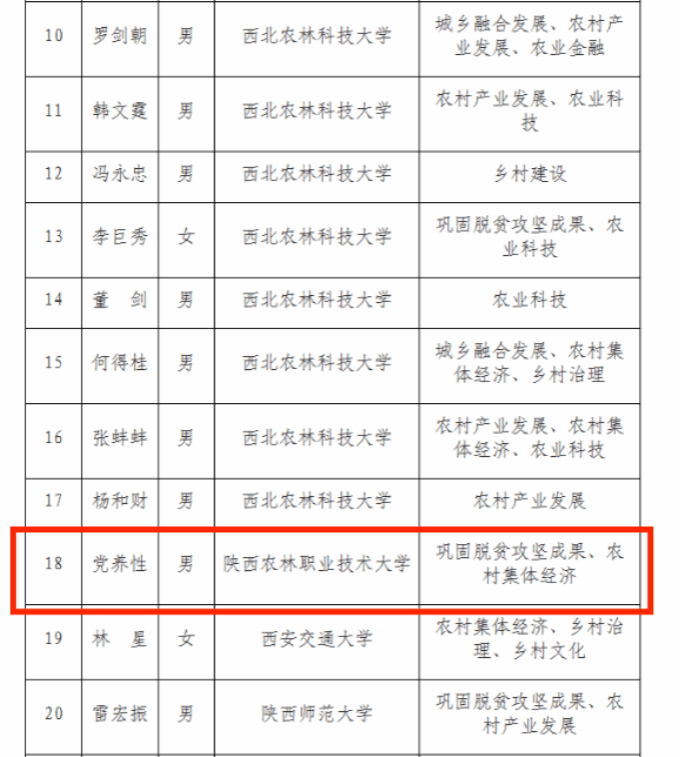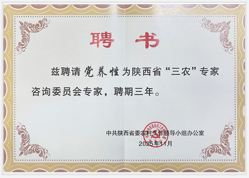 学校党养性教授入选陕西省“三农”专家咨询委员会第一批专家