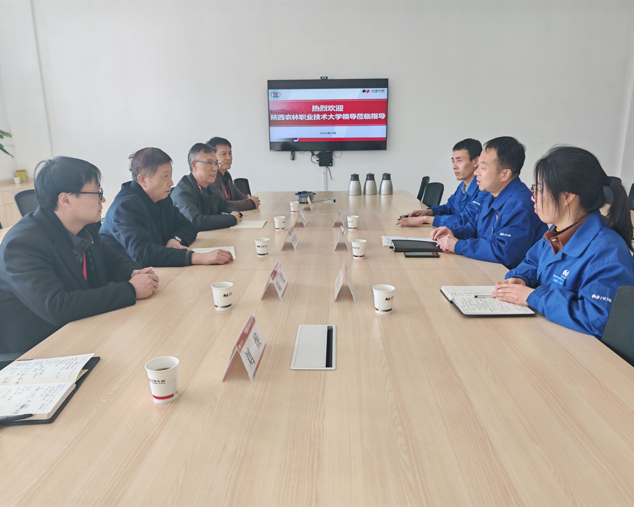 3月10日,副校长祝战斌带队赴陕西汉德车桥有限公司开展访企拓岗活动。陕西汉德车桥有限公司行政总监赵晓辉、高级业务经理张小勇、人事经理冯银萍,我校机电工程学院负责人、机械专业带头人、汽车专业带头人、就业干事等参加。