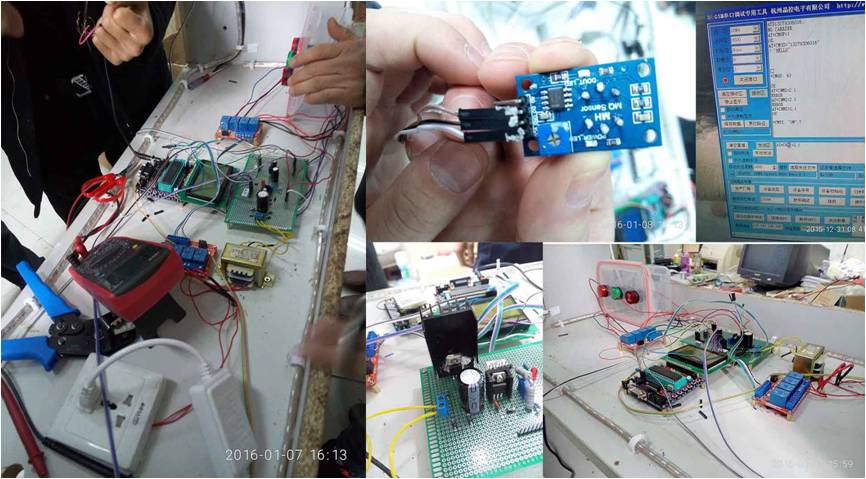 该系统历时两周,从展示台的制作、MUC主板和电源的焊接、接线和程序调试均由四位同学独立完成。该系统可实现自动开灯、家庭安全检测与智能采光三大功能,能够根据房门是否开启、室内光线强弱、是否存在火光、烟雾等自动实现实时安防状态显示、声鸣报警,窗帘的开启、闭合,并可通过短信向指定手机发送安防状态。