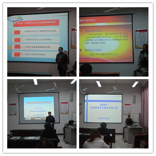 1月22日,为贯彻学院《关于举办我院青年教师教学竞赛的通知》精神,推进新形势下我院思想政治理论课教师队伍建设,思政课教学部举行了青年教师教学竞赛活动。