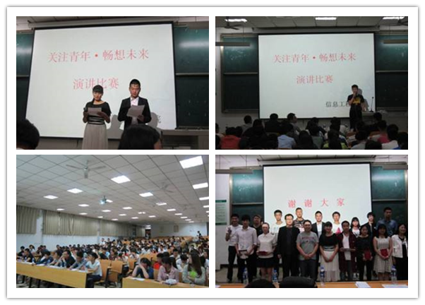 53日晚,信息工程分院在南校区NOB—105阶梯教室举办了关注青年·畅想未来演讲比赛,分院学工办负责人和辅导员、班主任及300余名同学参加了此次活动。经过近两周的紧张筹备,共有来自一、二年级不同专业十名同学参加比赛。比赛过程中,各个同学从不同的角度进行演讲,比赛过程百花齐放、百舸争流,让我们充分体会到青年学子对未来的憧憬,感受到了青春的美好,充分展现了现代大学生的热情活力,一波波精彩的演讲将活动推向高潮。经过评委老师的评判,最后来自动漫15017班陈明锐同学获得比赛一等奖。活动的最后由网络教研室王巍老师为大家的演讲进行了点评,还为同学们提出了很多宝贵意见。