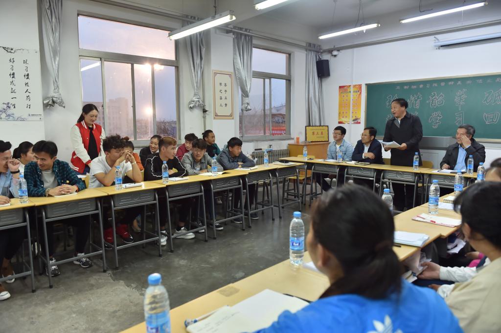 随着王周锁院长的点名,40名玉树班的同学们脸上洋溢着欢笑,挨个向王周锁院长问好。在欢快的气氛中,伴随着一声声问好,院长王周锁一一与玉树水利订单班的同学们认识。这是4月18日晚上七点半左右,在我院天润楼324教室里发生的一幕。