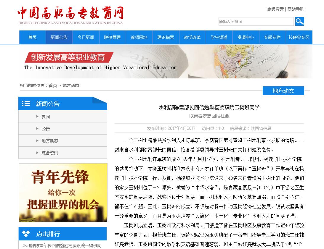 水利部陈雷部长回信勉励杨凌职院玉树班同学