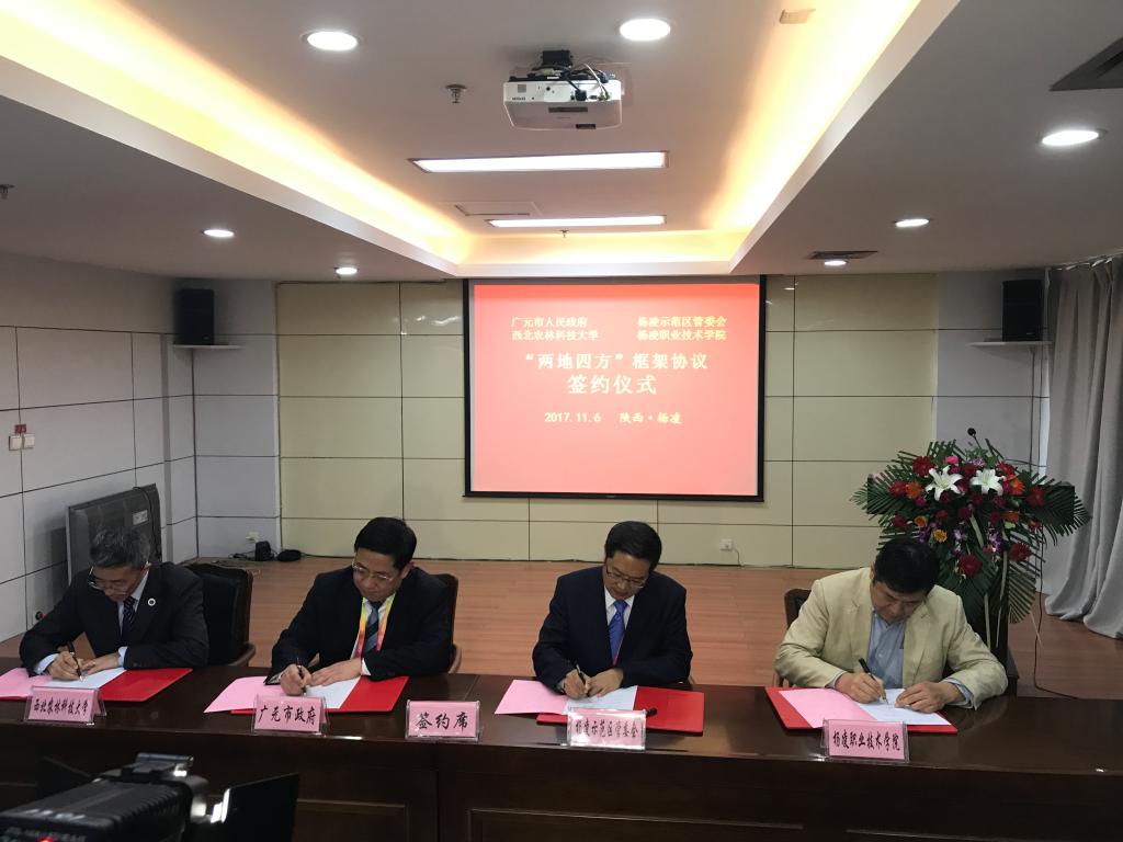 11月6日,我院与四川省广元市人民政府、杨凌示范区管委会、西北农林科技大学“两地四方”框架协议签字仪式暨广元优势农林特色产品推介会在杨凌示范区政务大厦举行。学院副院长王晓地参加签字仪式。