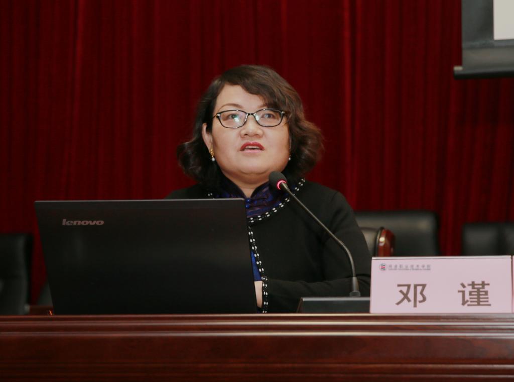报告会上,邓谨首先介绍了党的十九大召开情况和十九大报告的主要内容,随后重点以新时代、新思想、新征程、坚强领导核心四个方面为主线,为与会师生详细解读了党的十九大提出的一系列新的重大思想观点、重大判断、重大举措和宏伟蓝图。该场报告理论精深、内容生动、启发性强,对全院上下深入学习领会党的十九大精神有着十分重要的指导作用。