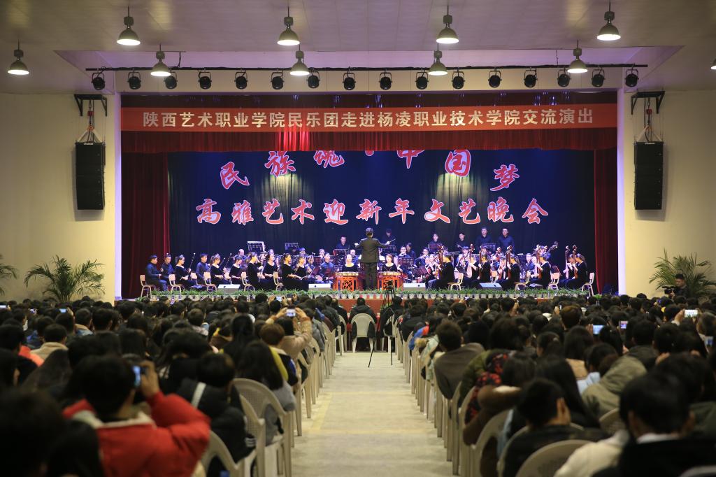 为了加强校园文化建设,提升校园文化活动的品位,喜迎新年的到来。12月27日,学院邀请陕西艺术职业学院民乐团来校举办了“民族魂·中国梦”高雅艺术迎新年文艺晚会。学院领导赵曼、王周锁、张永良,陕西艺术职业学院院长强陆平到场观看晚会。学院各部门负责人、各分院(部)党总支书记、院长(主任)、学工办主任、团总支书记、辅导员等1000余名师生代表观看了音乐会。