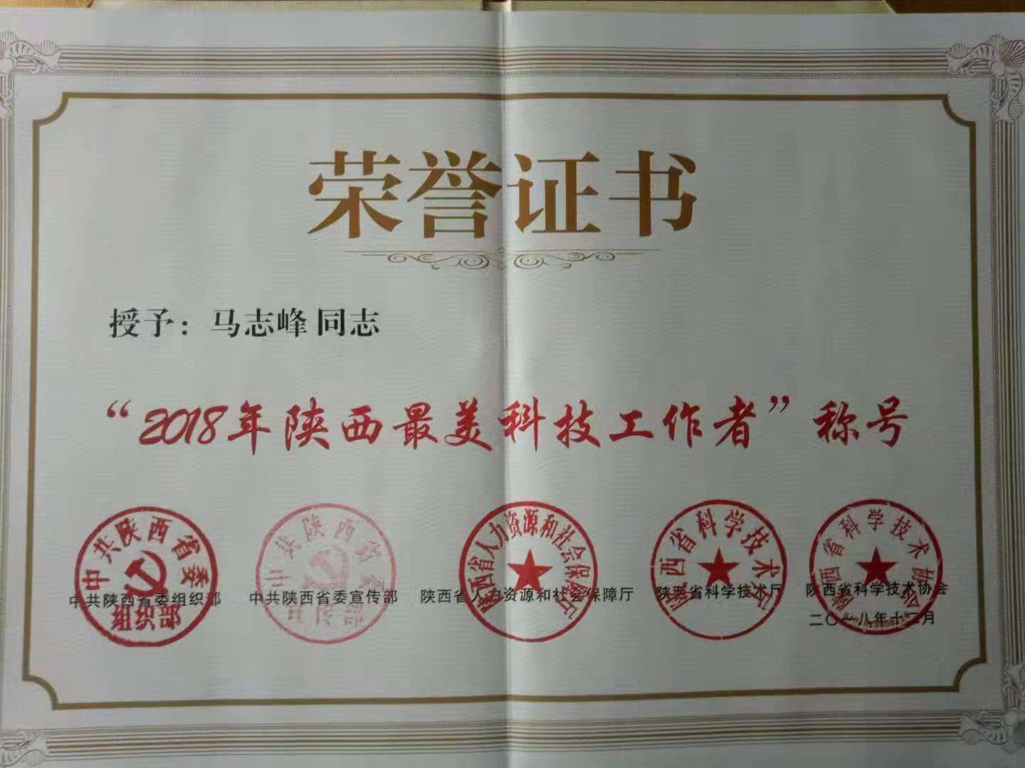 12月7日,陕西最美科技工作者表彰大会在陕西宾馆举行。大会表彰了3 0位长期扎根陕西、扎根基层一线,且事迹感人的杰出科技工作者代表。我院生物工程分院教授马志峰获此殊荣。