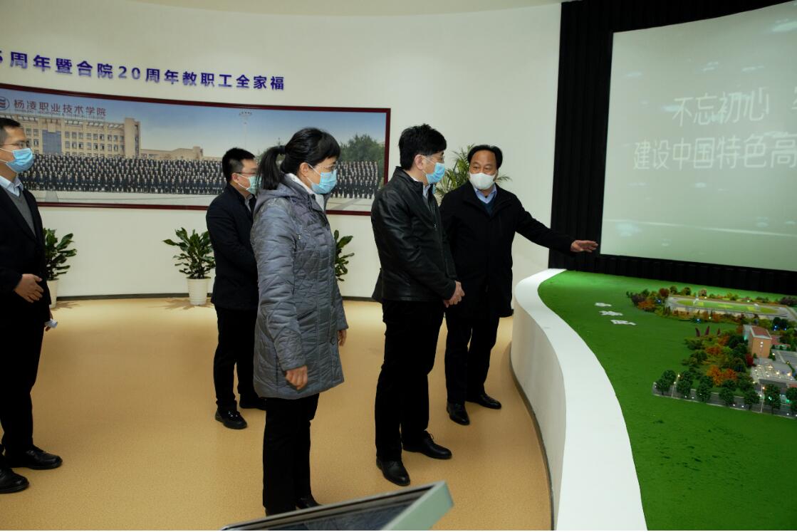朱晓渭在讲话中,首先从政治过硬,坚强有力;思路清晰,目标明确;改革创新,成果丰硕;人才引领,成绩突出;育人授技,脱贫攻坚;严防严控,成效显著六方面,对学院发展建设取得的成绩给予肯定。他指出,学院成功入选中国特色高水平高职学校建设单位,是学院迎来的又一次重要发展机遇,对于学院扎实推进内涵建设、全面提升办学水平具有积极的促进作用,希望学院一是抓住机遇,致力发展。要紧紧抓住“双高”建设、乡村振兴、国务院对杨凌示范区《批复》和职业教育发展等机遇,统一思想,坚定信心,始终保持稳步向前的良好发展态势;二是突出“农”字,服务三农。要不忘服务三农初心、勇担乡村振兴使命,沿着有效解决农业类专业招生就业问题的方向深耕细作,持续办好农业类专业,争做乡村振兴的排头兵,为乡村振兴做好人才储备;三是校企合作,深度融合。要在现代农业职业教育创新园区建设中,充分体现校企合作、工学结合,同时聚焦学生精技强能、顶岗实习和教师实践锻炼,积极探索产教融合、协同创新的校企“双元”育人模式,着力打造产学结合紧、办学特色显、人才质量高的“企业学院”品牌;四是强化优势,全面开花。要通过特色凝练和优势发挥,不断增强学院发展动力和活力,朝着“国内一流、国际具有一定影响力的高职名校”奋斗目标矢志前行,进一步推动学院各项事业蓬勃发展。对于学院提出的请求支持事项,他表示省教育厅将全力支持。