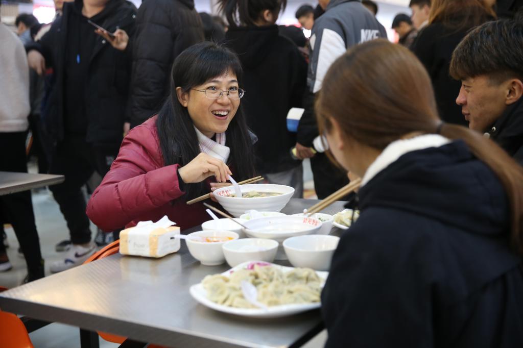 党委副书记、纪委书记刘粉莲与学生品饺子、过冬至
