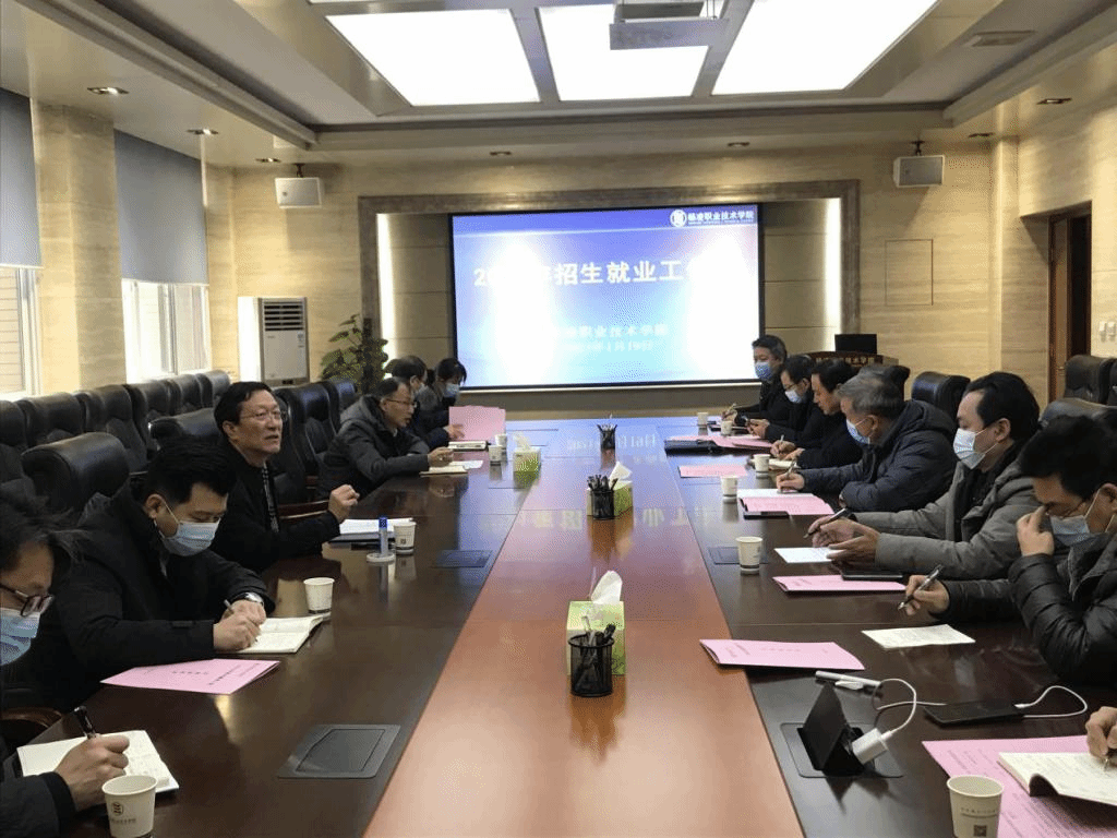 1月19日上午,学校2021年招生就业工作会暨招生就业工作目标任务书签订会在南校区醒钟楼208会议室举行。党委副书记任得元出席会议,各二级分院(部)党总支书记、学工办主任和招生就业处全体工作人员参加了会议。