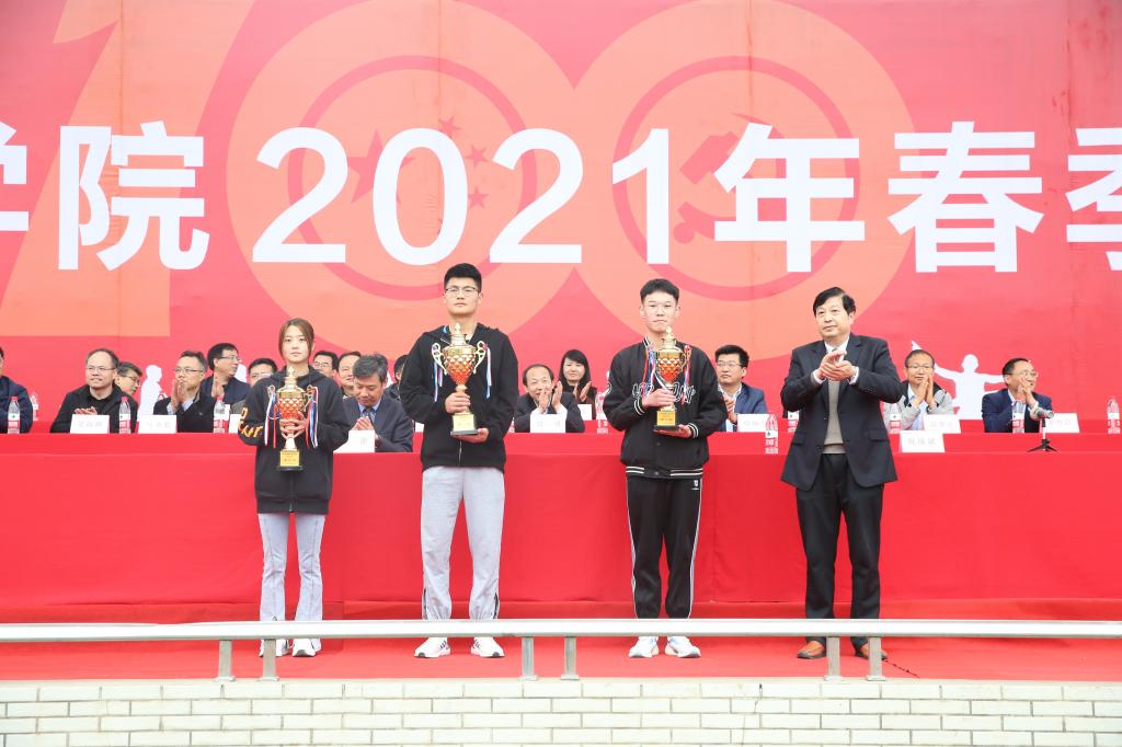 展青春风采,扬运动雄风。4月22日至23日,我校2021年春季田径运动会在南校区体育场举行。学校党委副书记、校长王周锁,副校长张迪、祝战斌、胡俊鹏,各学院(部)党总支书记、院长、各处室(中心)负责人以及大一、大二辅导员、学生近万余人参加了开、闭幕式。来自11个学院的400余名运动员参加了28个项目的角逐。