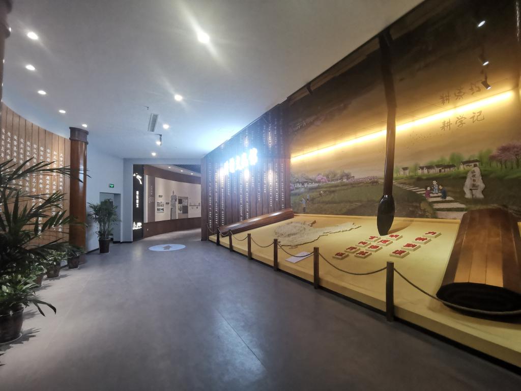 序厅融合竹简、活字印刷、毛笔、学堂、农耕等元素,寓意耕读文化历史深厚,新时代的广大师生继续将论文写在大地上,开启耕读教育新篇章。