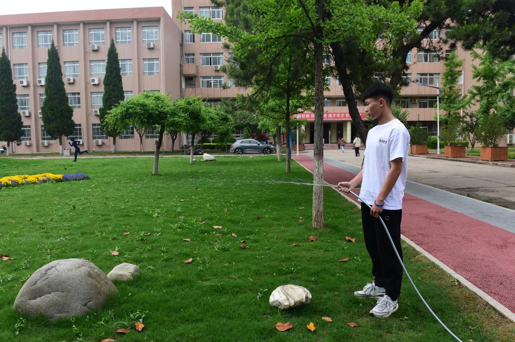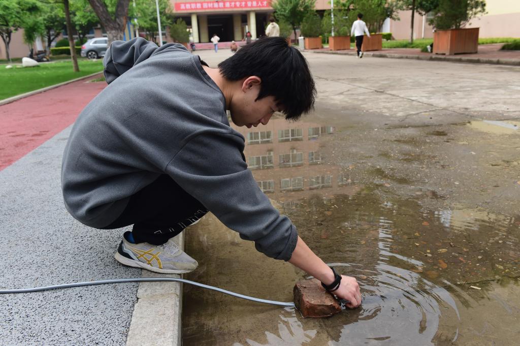 54日下午,机电工程学院开展“学习二十大 永远跟党走 青春志愿行”学雷锋志愿服务活动,机电分院自动化技术创新小组4名学生对南校区人行道雨后积水进行抽排,方便师生通行。副校长张朝晖到现场查看,对机电学院学生应用微型泵,抽取校园内积水浇花,创新劳动课形式,把技能展示在校园,助力文明校园创建表示赞赏。