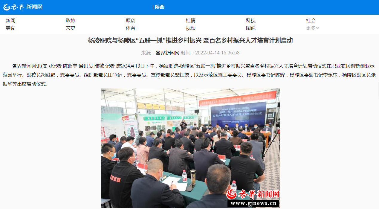 【各界新闻网】杨凌职院与杨陵区“五联一抓”推进乡村振兴 暨百名乡村振兴人才培育计划启动