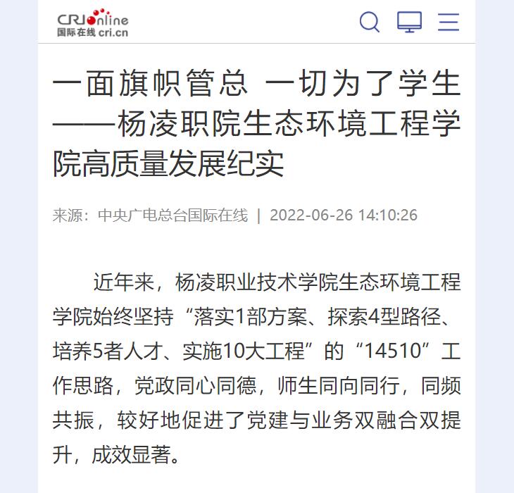 近年来,杨凌职业技术学院生态环境工程学院始终坚持“落实1部方案、探索4型路径、培养5者人才、实施10大工程”的“14510”工作思路,党政同心同德,师生同向同行,同频共振,较好地促进了党建与业务双融合双提升,成效显著。