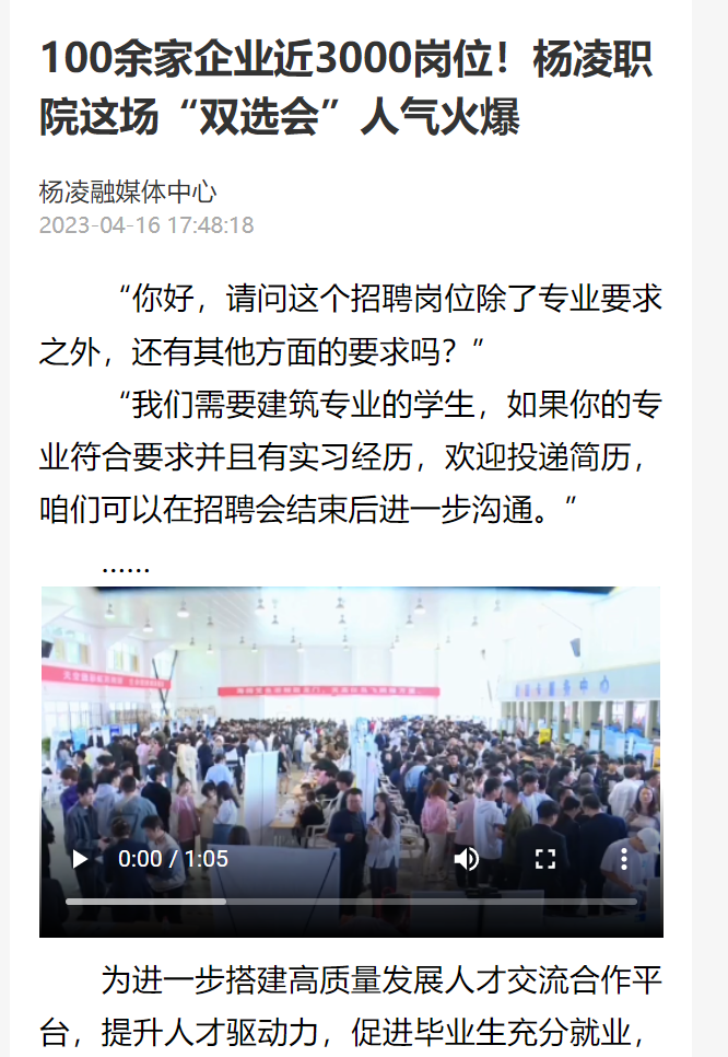 【杨凌融媒体中心】100余家企业近3000岗位!杨凌职院这场“双选会”人气火爆