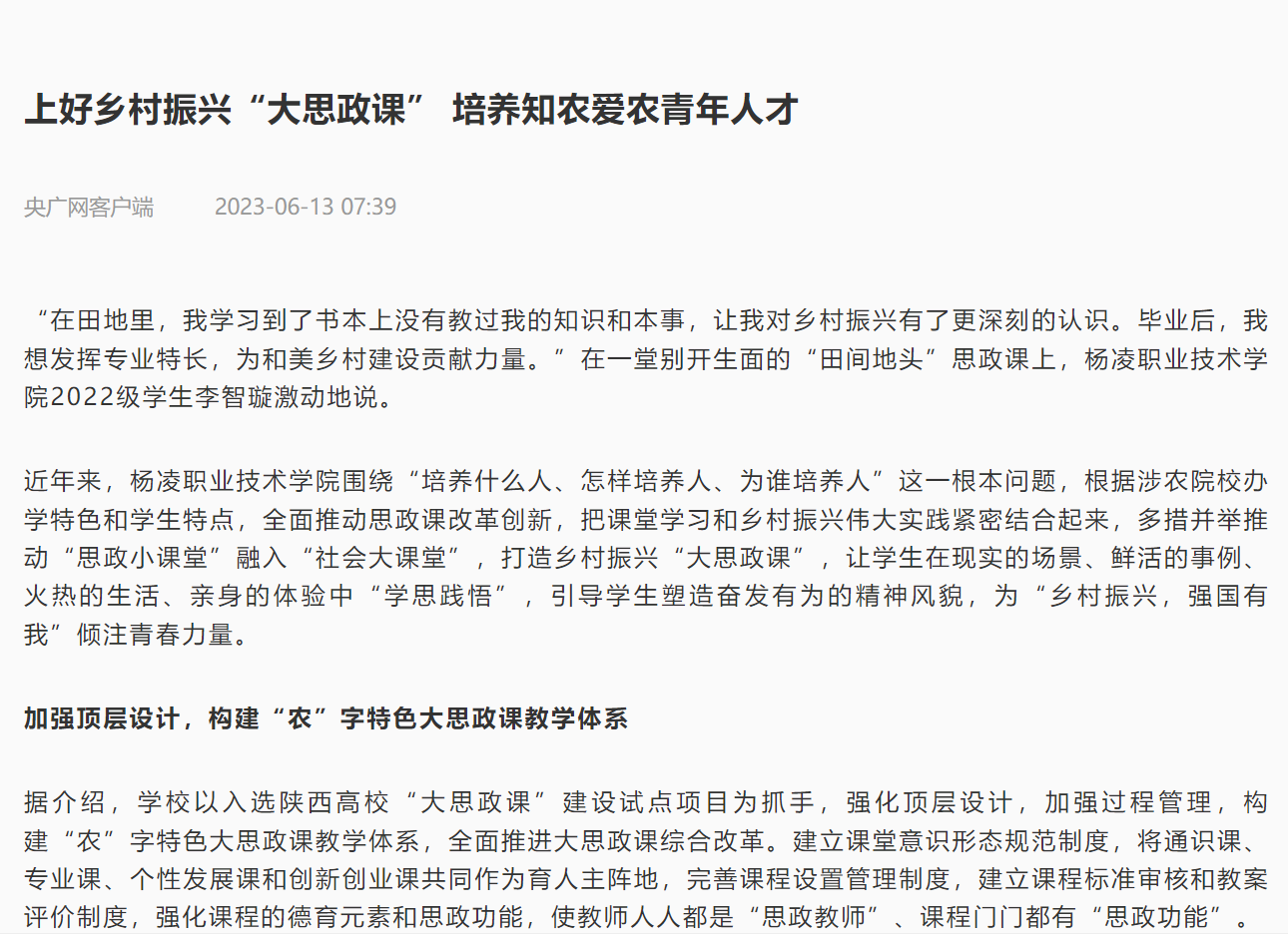 【央广网】上好乡村振兴“大思政课” 培养知农爱农青年人才