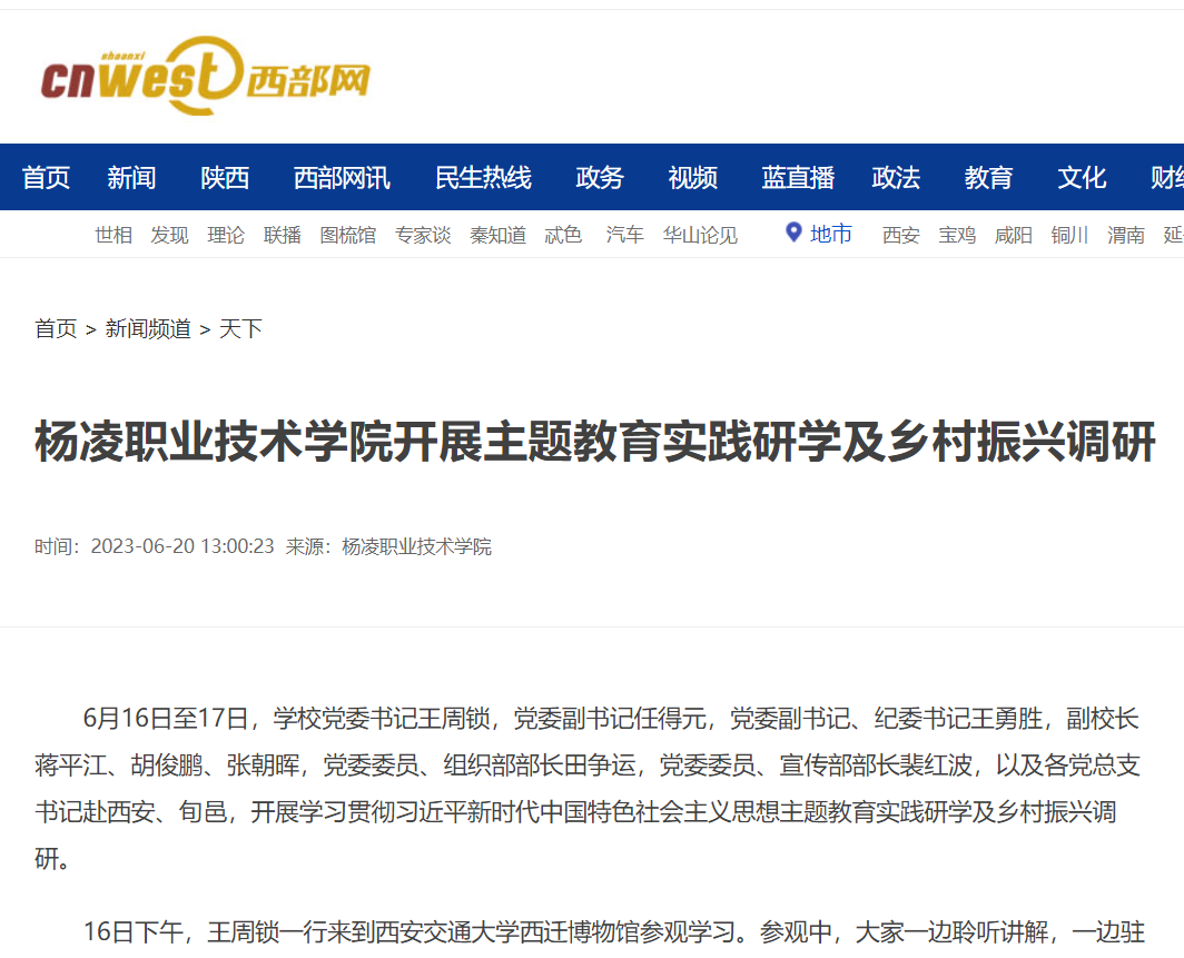 【西部网】杨凌职业技术学院开展主题教育实践研学及乡村振兴调研