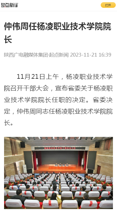 11月21日上午,杨凌职业技术学院召开干部大会,宣布省委关于杨凌职业技术学院院长任职的决定。省委决定,仲伟周同志任杨凌职业技术学院院长。