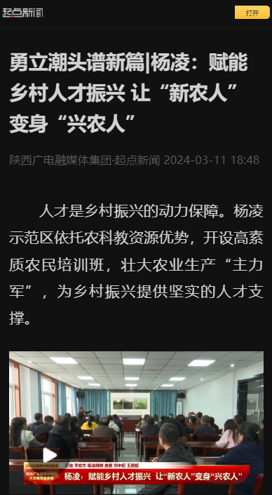 人才是乡村振兴的动力保障。杨凌示范区依托农科教资源优势,开设高素质农民培训班,壮大农业生产“主力军”,为乡村振兴提供坚实的人才支撑。