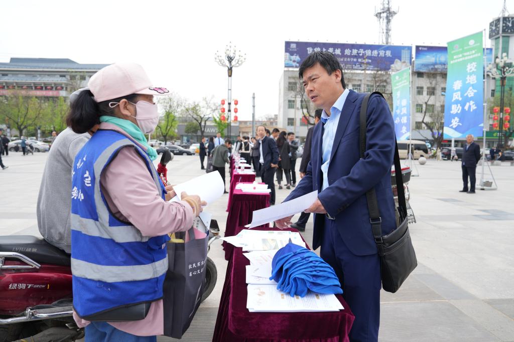 4月10日,由陕西省教育厅、渭南市委市政府和杨凌职业技术学院主办的第32届“科技之春”助力乡村振兴活动启动仪式在渭南市蒲城县中心广场举行。杨凌职业技术学院党委书记王周锁宣布第32届“科技之春”助力乡村振兴活动启动。省教育厅高校技术转移中心主任田鹏,渭南市农业农村局党委委员、副局长刘刚、党组成员、副局长普布顿珠,渭南市农科院院长王杨军,杨凌职业技术学院副校长胡俊鹏,蒲城县副县长冯新等出席启动仪式。