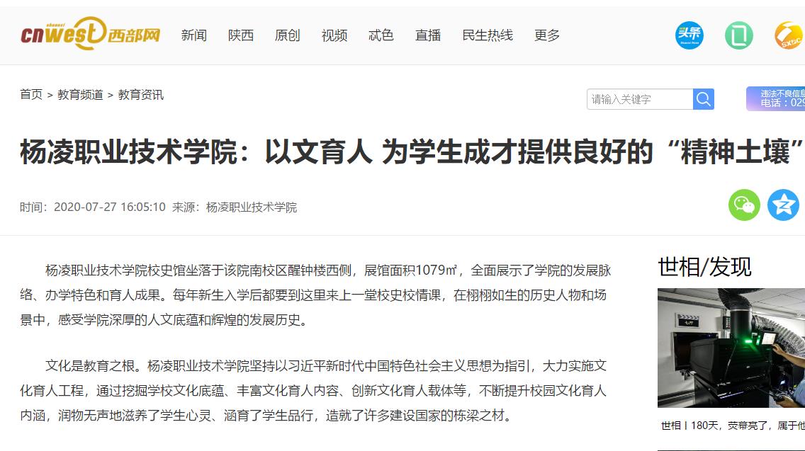 文化是教育之根。杨凌职业技术学院坚持以习近平新时代中国特色社会主义思想为指引,大力实施文化育人工程,通过挖掘学校文化底蕴、丰富文化育人内容、创新文化育人载体等,不断提升校园文化育人内涵,润物无声地滋养了学生心灵、涵育了学生品行,造就了许多建设国家的栋梁之材。