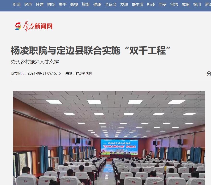 8月26日,杨凌职业技术学院与榆林市定边县联合实施的乡村人才振兴“双千能力提升工程”正式启动。双方相关单位负责人参加了启动仪式。