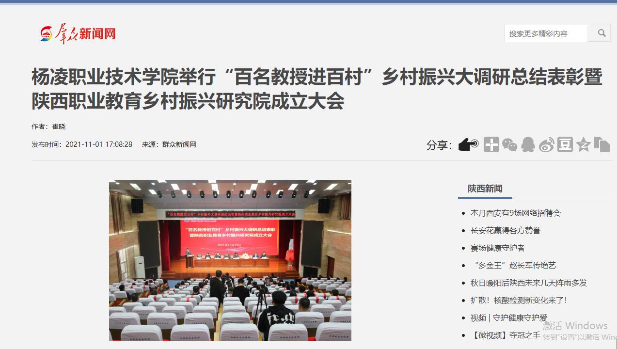 【群众新闻网】杨凌职业技术学院举行“百名教授进百村”乡村振兴大调研总结表彰暨陕西职业教育乡村振兴研究院成立大会