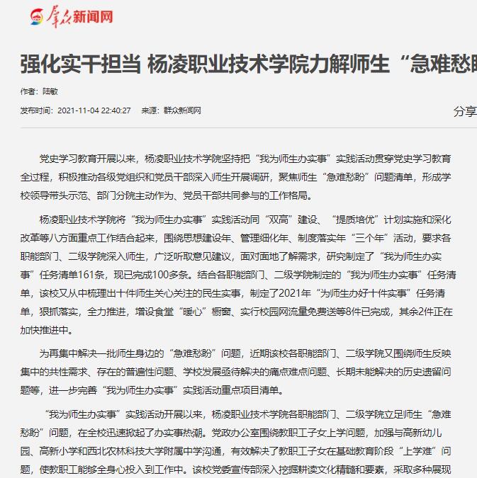 【群众新闻网】强化实干担当 杨凌职业技术学院力解师生“急难愁盼”