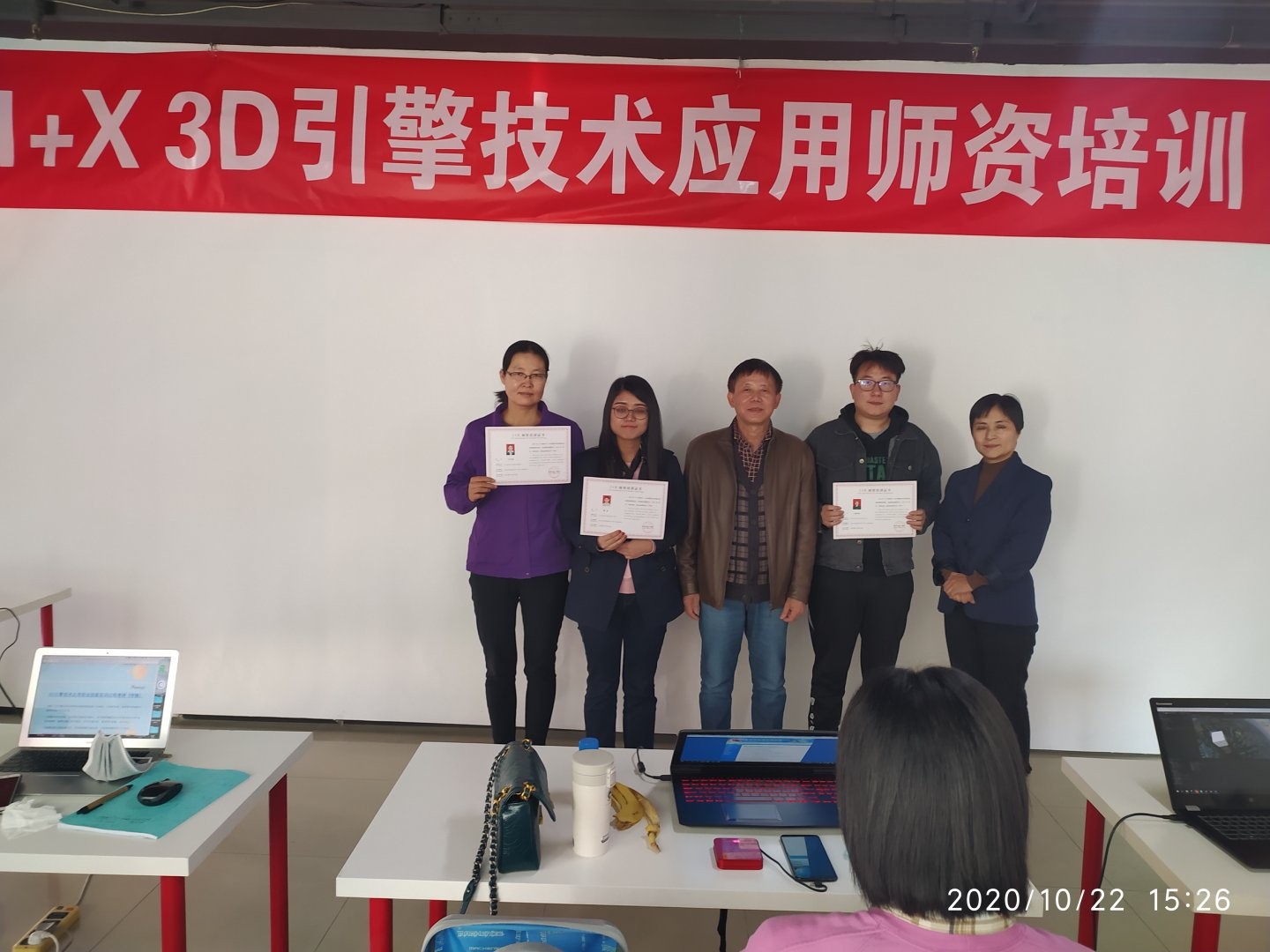 在为期一周的师资培训中,通过指导老师和专家的示范讲解,学习了Unity材质系统的使用、项目的后处理、animation系统的使用、cinemachine插件的应用等方面的知识,完成了相关项目的制作,三位老师均通过师资培训的考试,获得1+X 3D引擎技术应用技能师资证书(中级)。