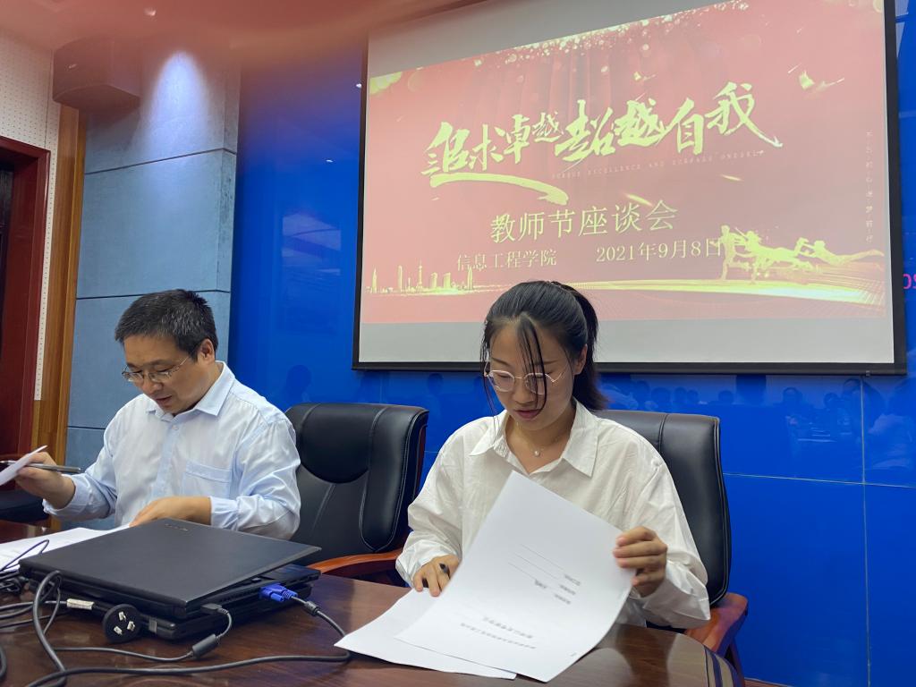 为庆祝第37个“教师节”,信息工程学院举办庆祝教师节系列活动。9月8日下午,信息工程举办了教师节座谈会暨以老带新签约仪式。